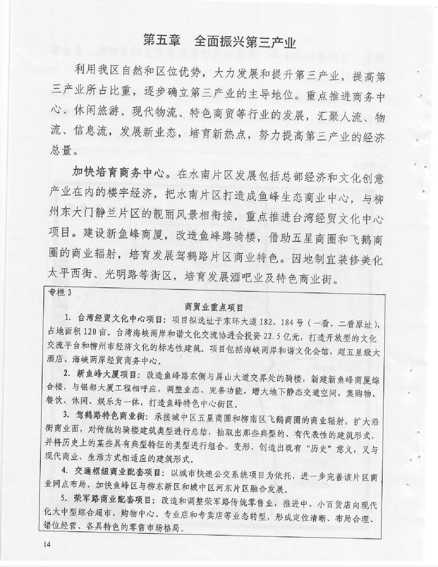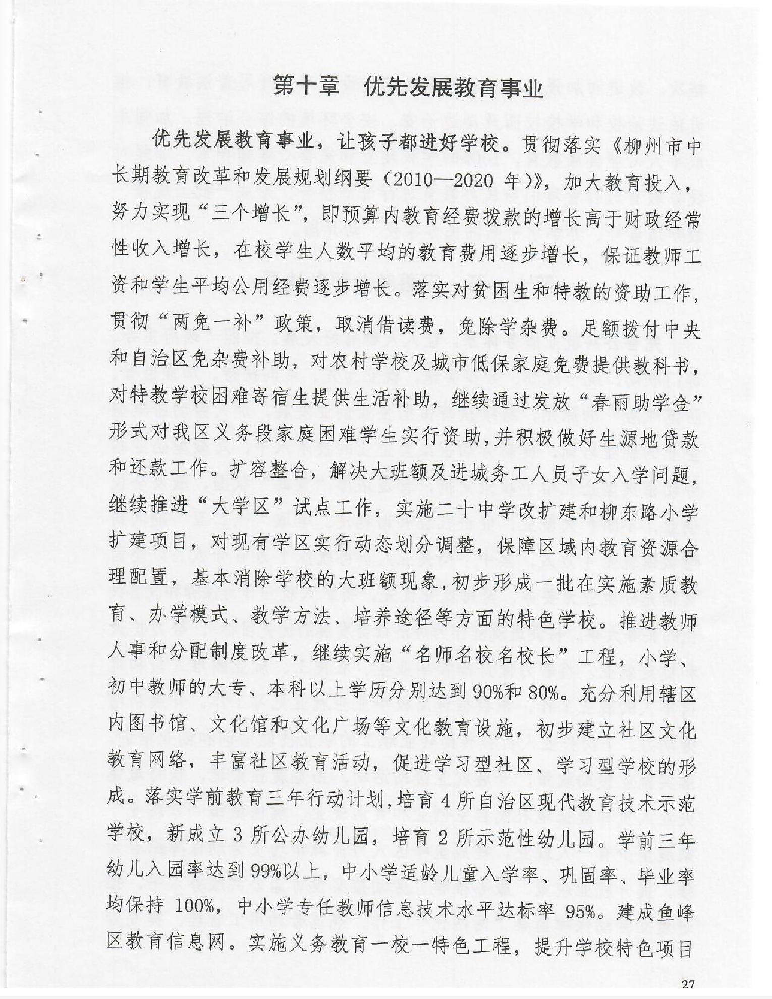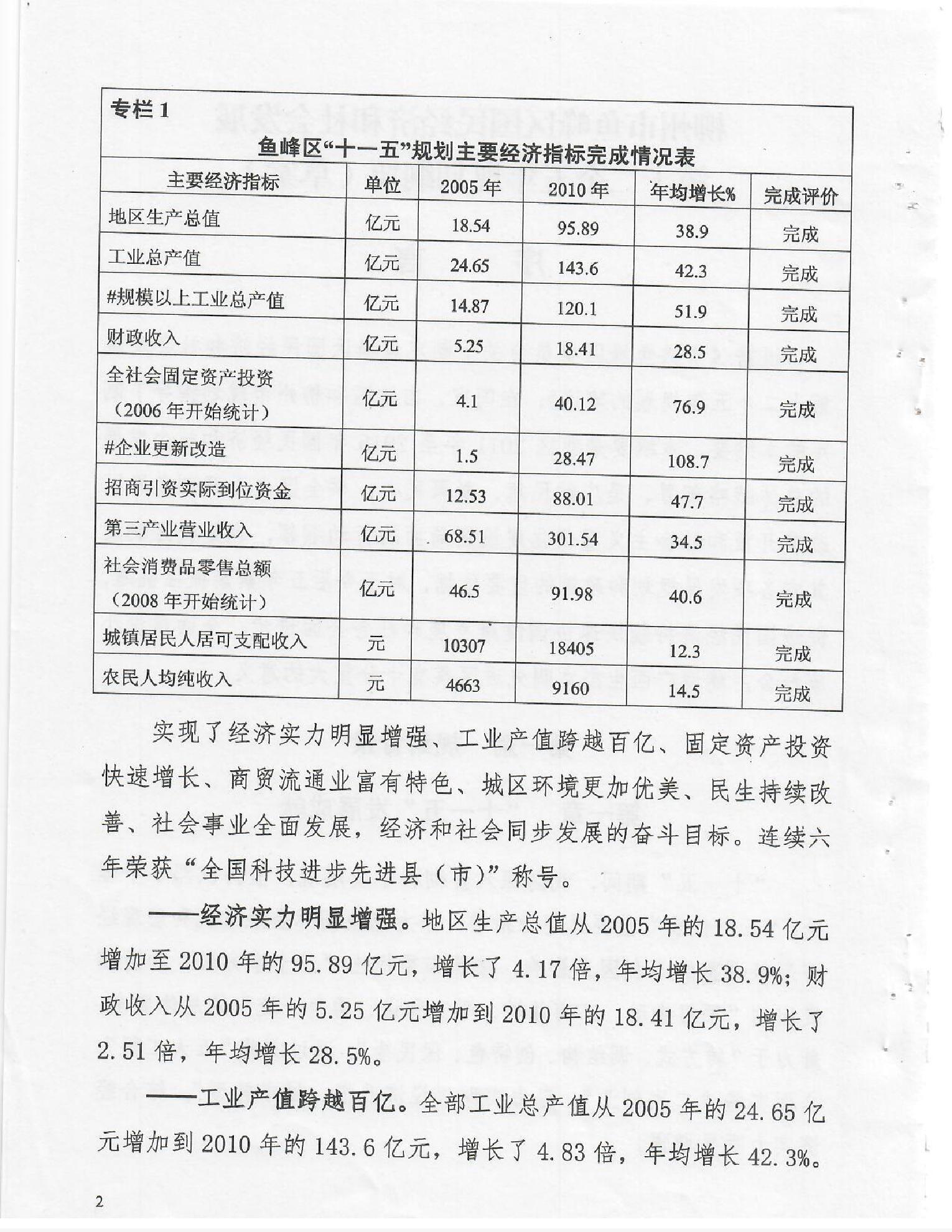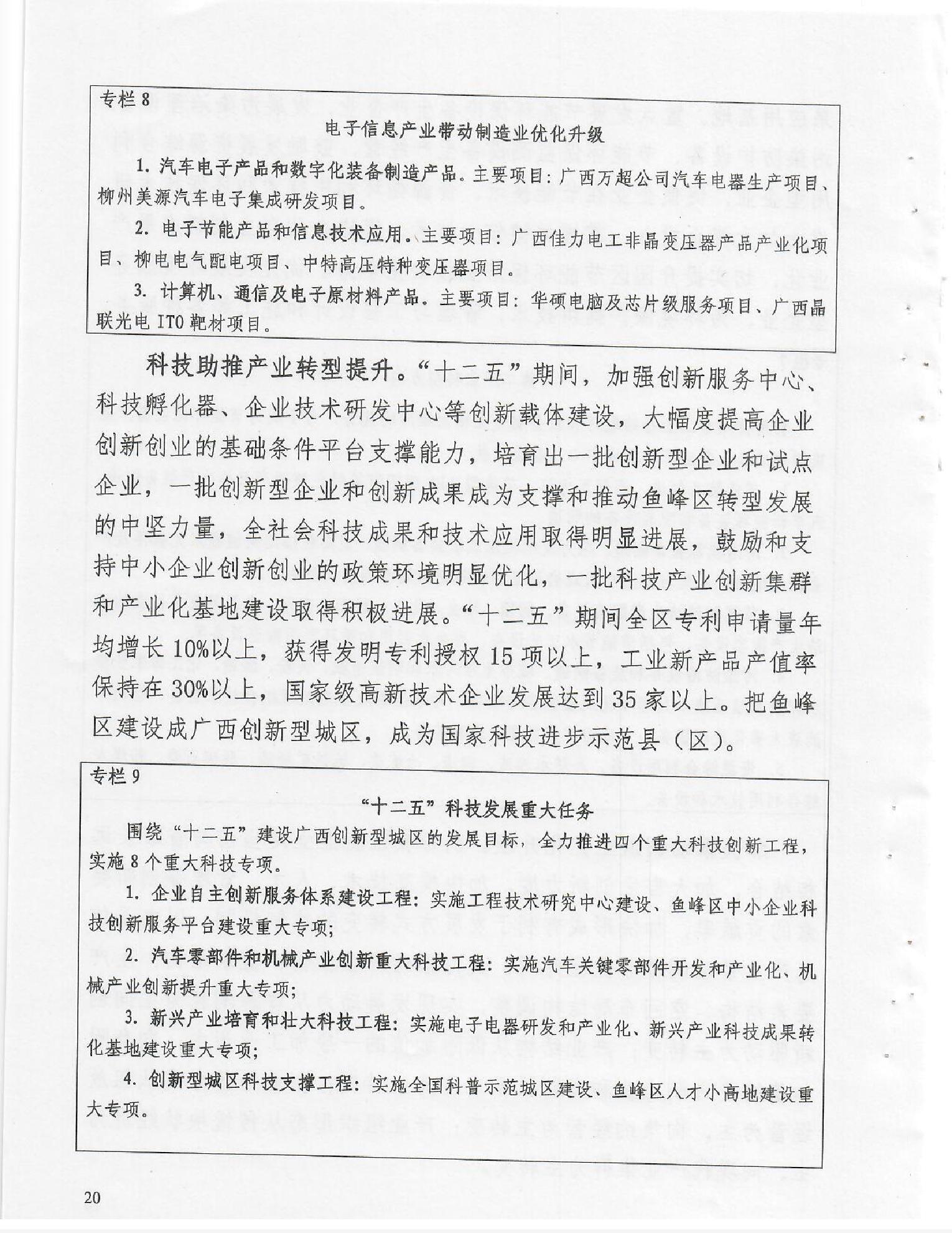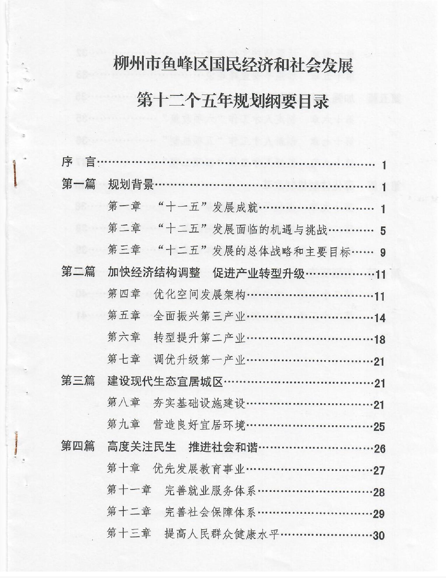柳州市鱼峰区国民经济和社会发展第十二个五年规划纲要