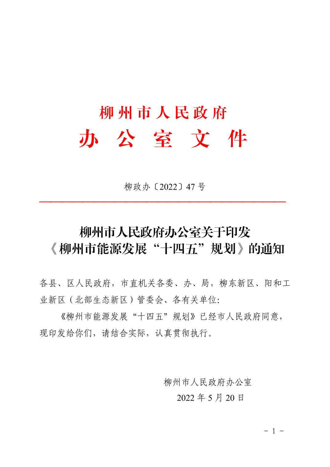 柳政办〔2022〕47号 柳州市人民政府办公室关于印发《柳州市能源发展“十四五”规划》的通知
