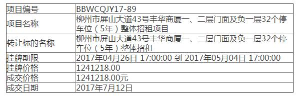 柳州市屏山大道43号丰华商厦一、二层门面及负一层32个停车位(5年)整体招租项目