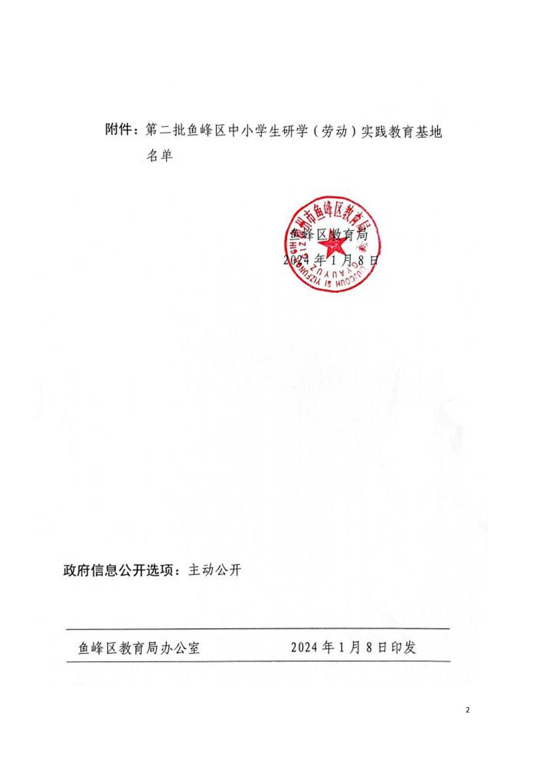鱼教发〔2024〕1 号 关于公布第二批鱼峰区中小学生研学(劳动)实践教育基地名单的通知