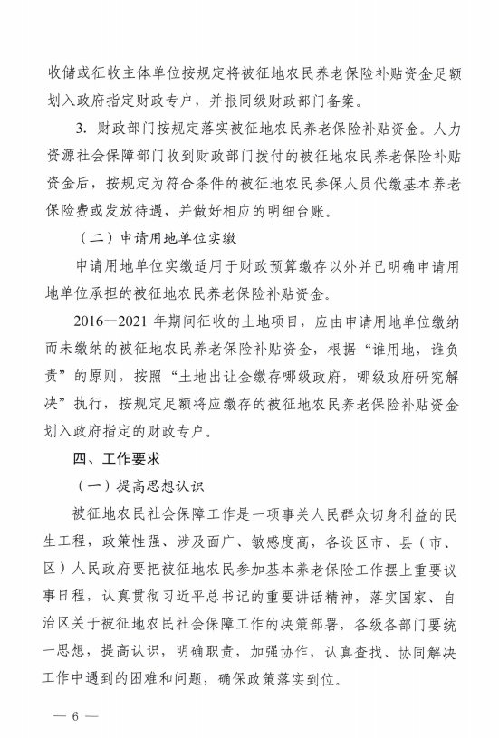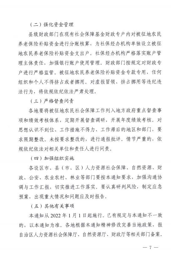桂人社规〔2022〕2号 广西壮族自治区人力资源和社会保障厅等6部门关于进一步做好被征地农民参加基本养老保险有关工作的通知