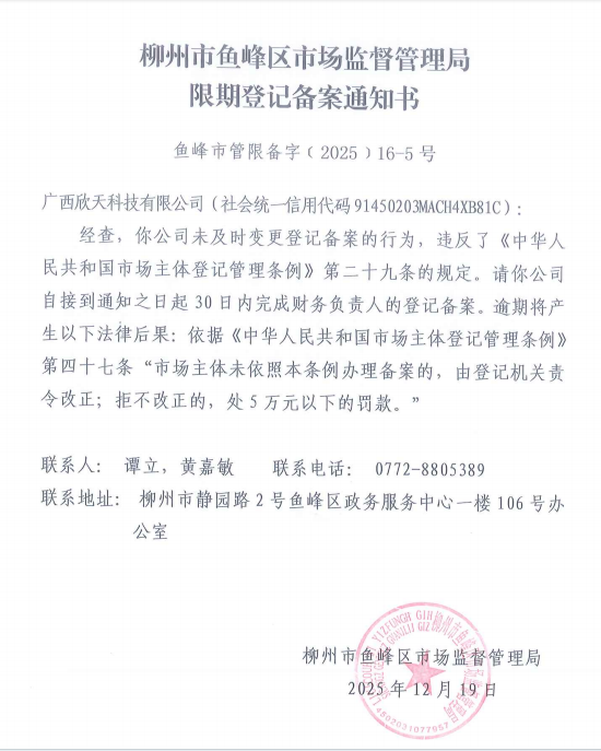 附:《限期登记备案通知书》(鱼峰市管限备字﹝2025﹞16-5号)