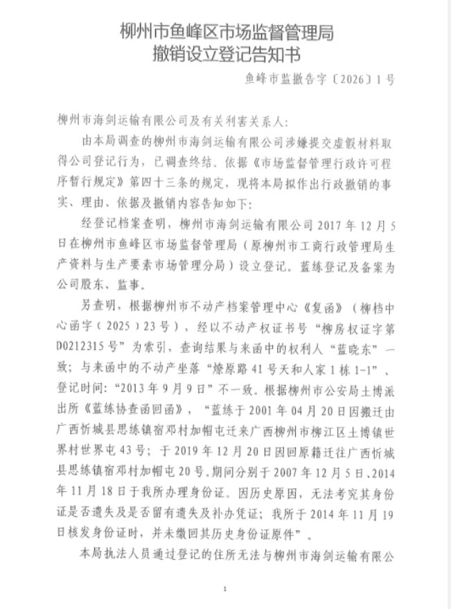 附:《撤销设立登记告知书》(鱼峰市监撤告字〔2026〕1号)
