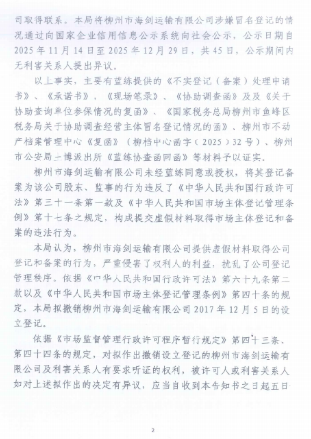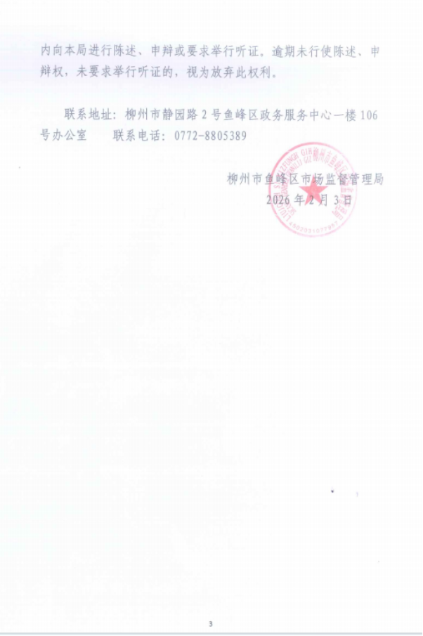 本局于2026年2月3日作出《撤销设立登记告知书》(鱼峰市监撤告字〔2026〕1号),因无法通过直接或邮寄等方式送达上述告知书,本局现依法公告送达。