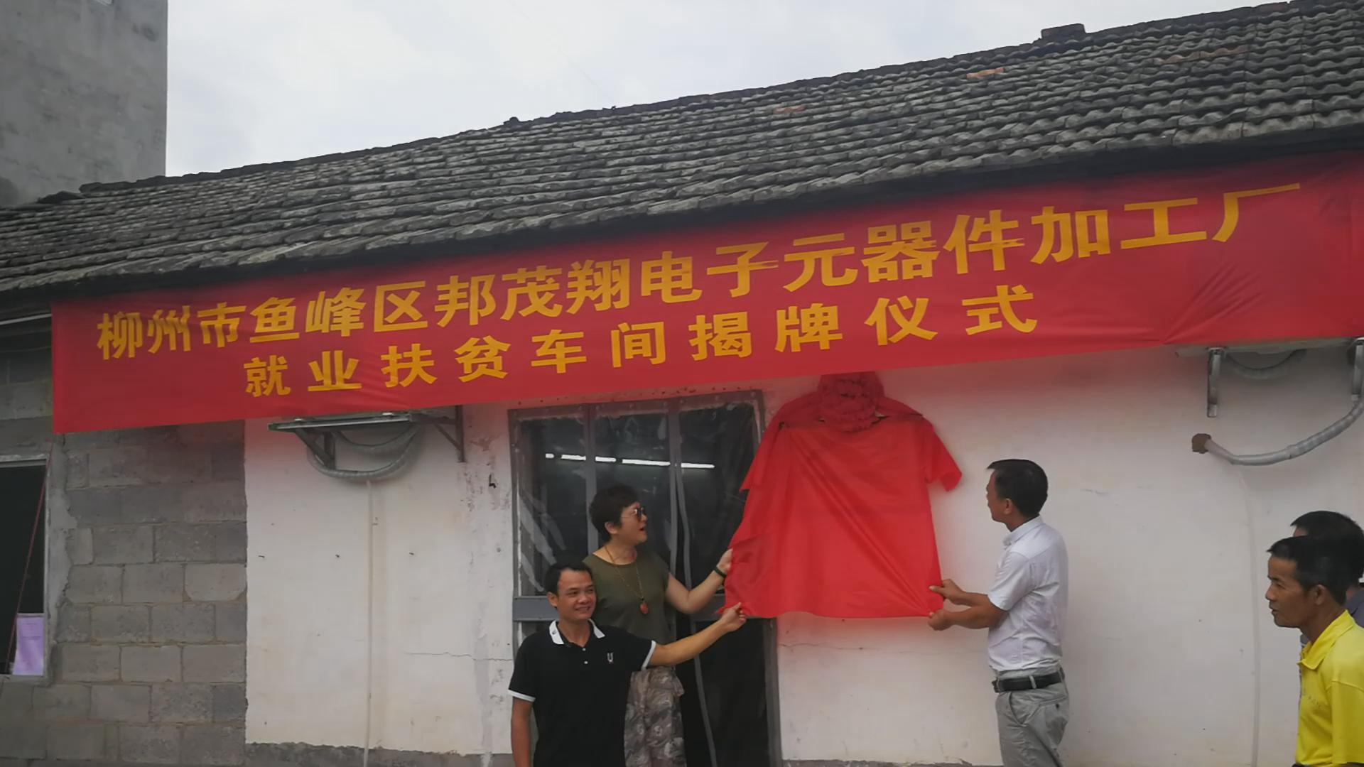 区人社局局长宋志红、白沙镇副镇长黄仁新、柳州市鱼峰区邦茂翔电子元器件加工厂负责人韦礼华揭牌。