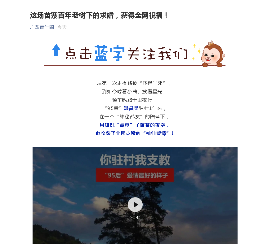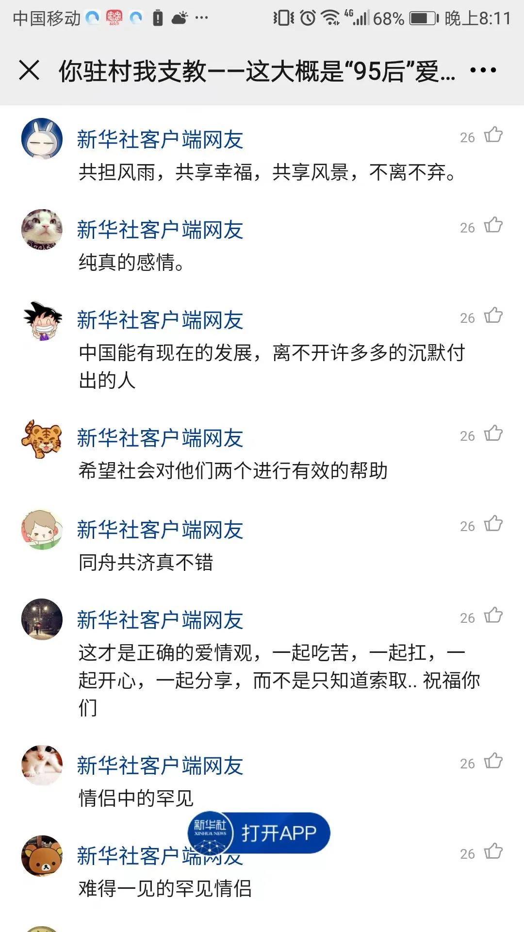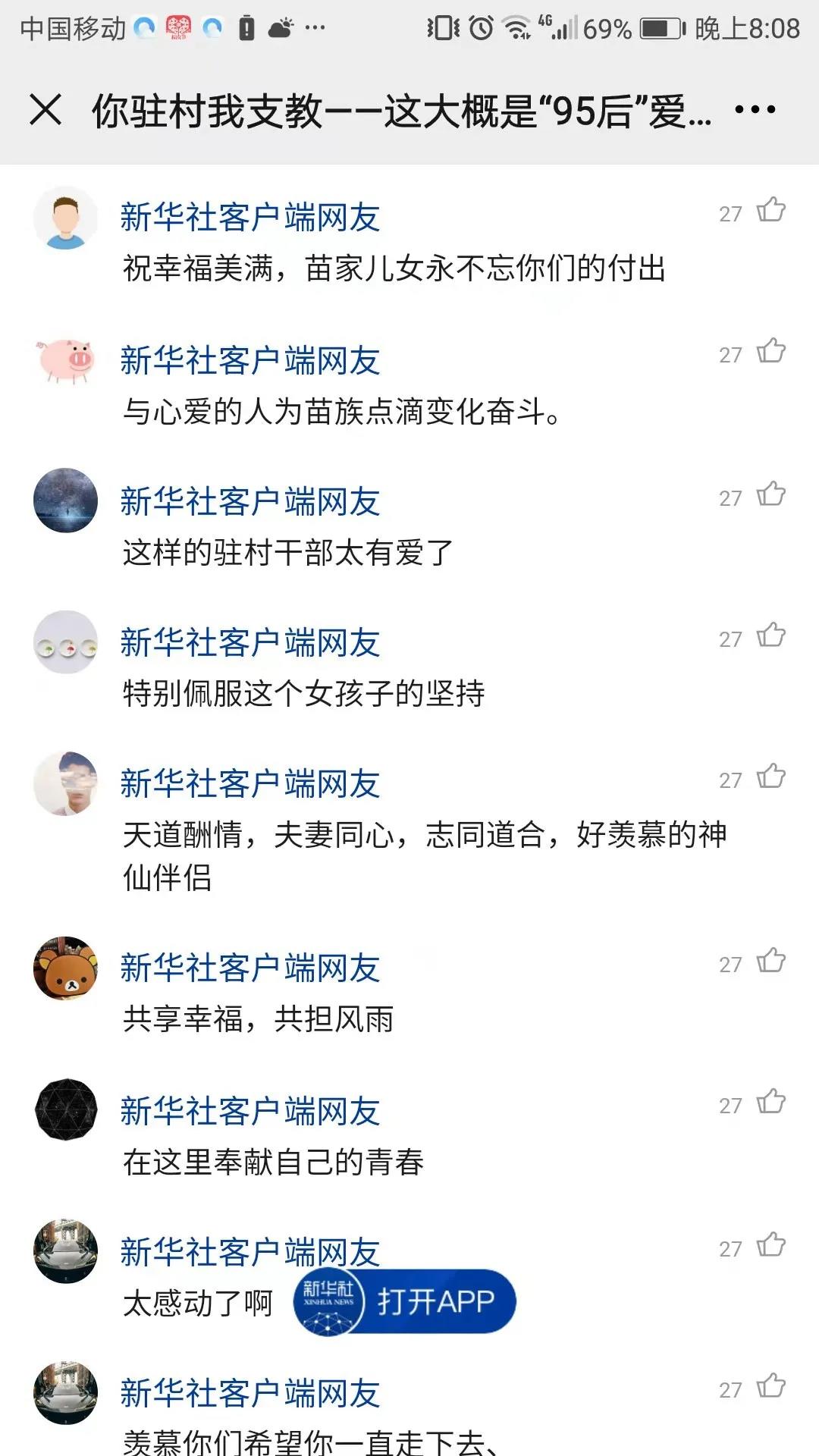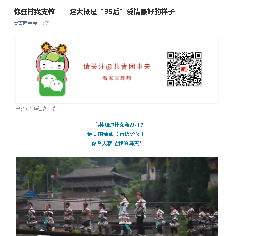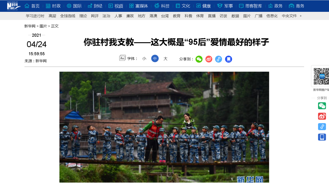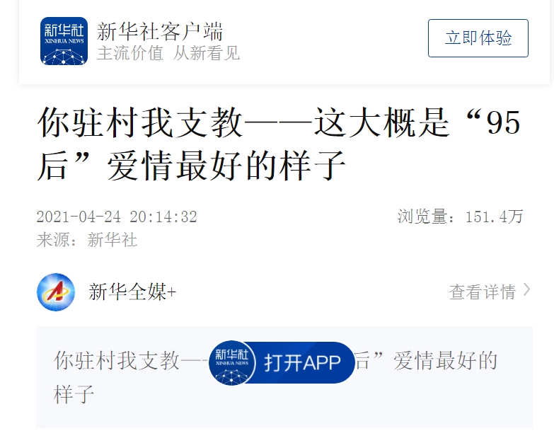 4月23日,新华社播发文字通稿《你驻村我支教——这大概是“95后”爱情最好的样子》。