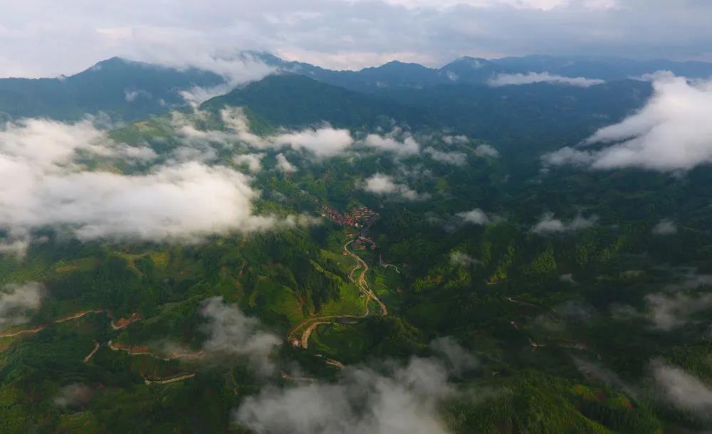 柳州市融水苗族自治县杆洞乡党鸠村乌英苗寨(2020年6月10日摄 无人机照片)。