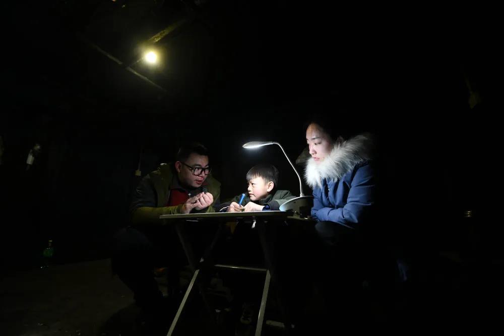 郑昌昊(左)和吴晗(右)指导学生写作业(1月30日摄)。