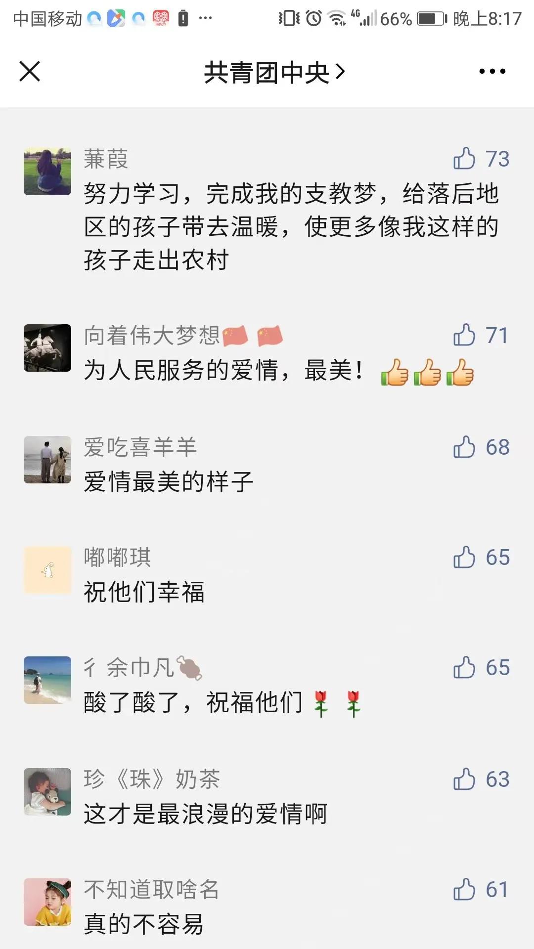 稿件发出后,得到了各地网友的关注,大家纷纷给予他们最美的祝福。