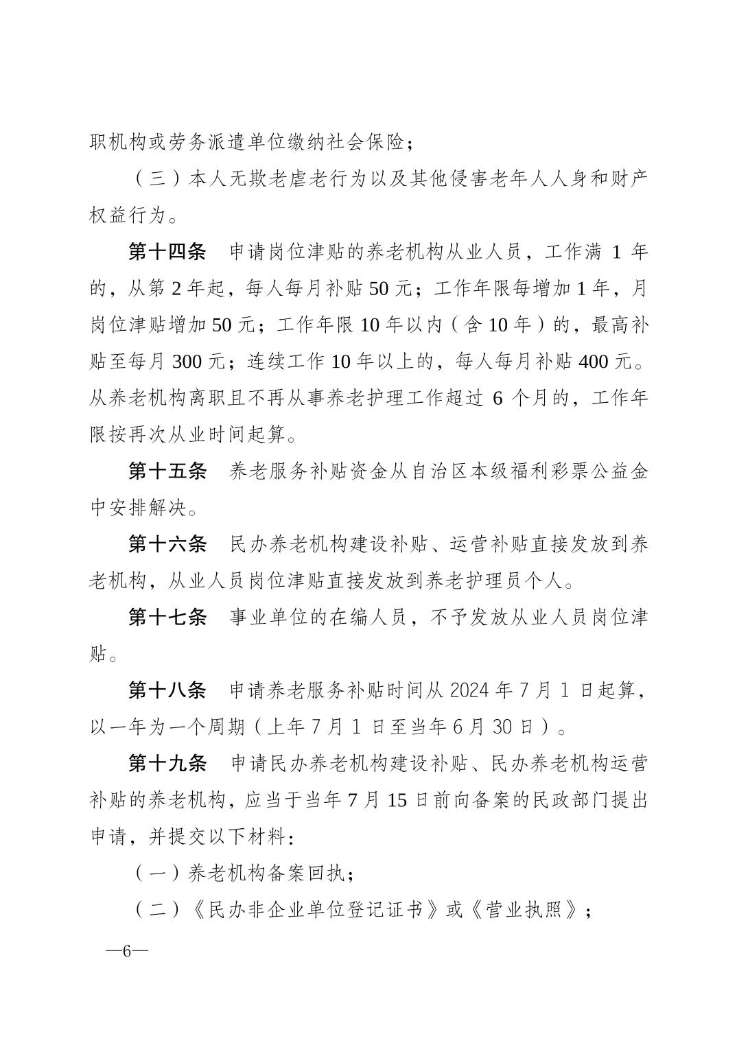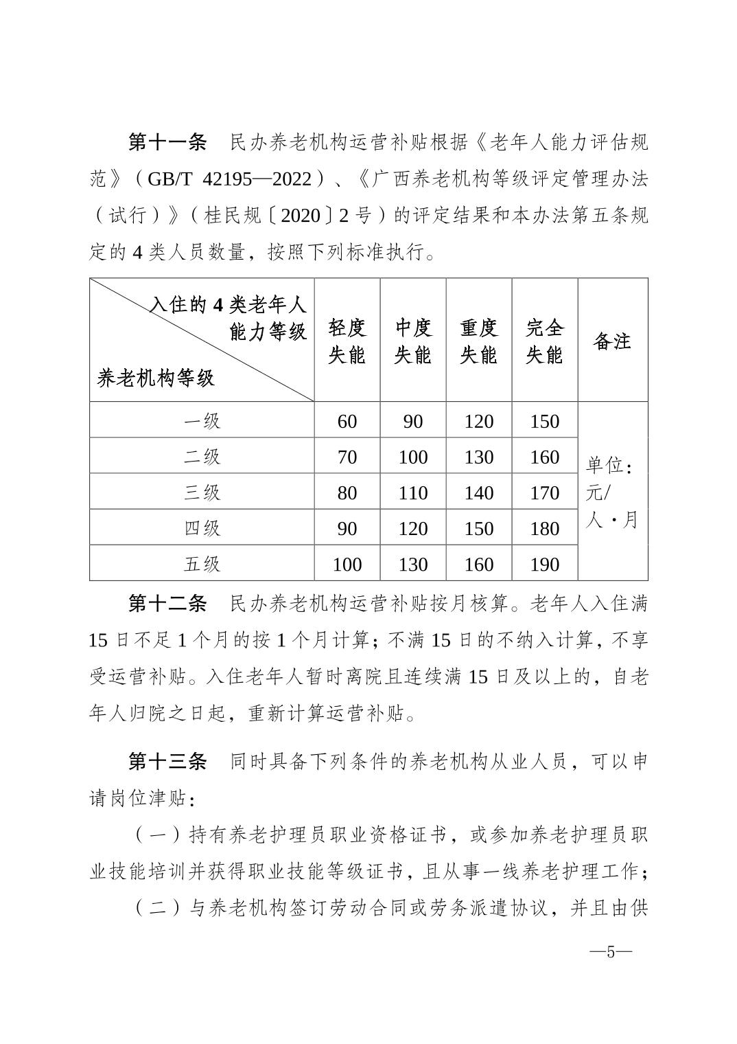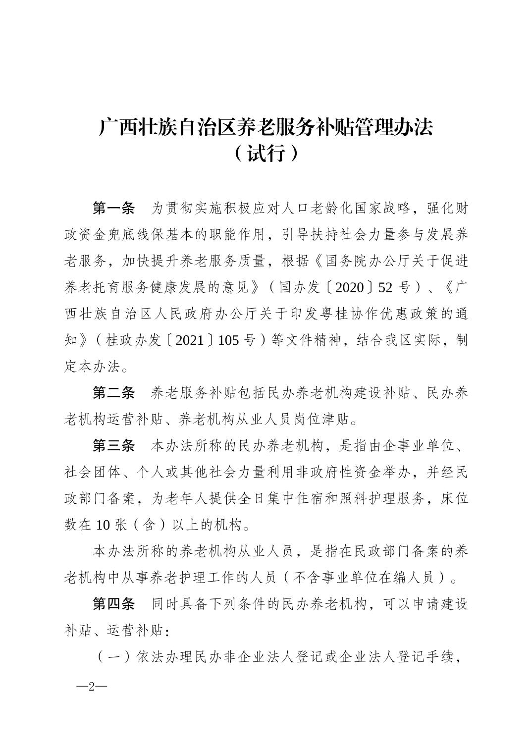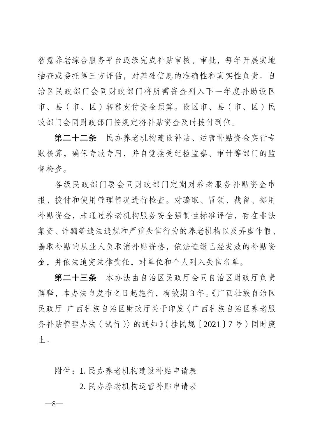 广西壮族自治区民政厅 广西壮族自治区财政厅 关于印发广西壮族自治区养老服务补贴管理办法(试行)的通知