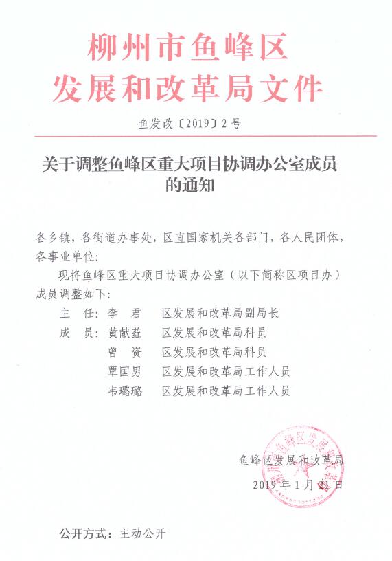 鱼发改【2019】2号-关于调整鱼峰区重大项目协调办公室成员的通知